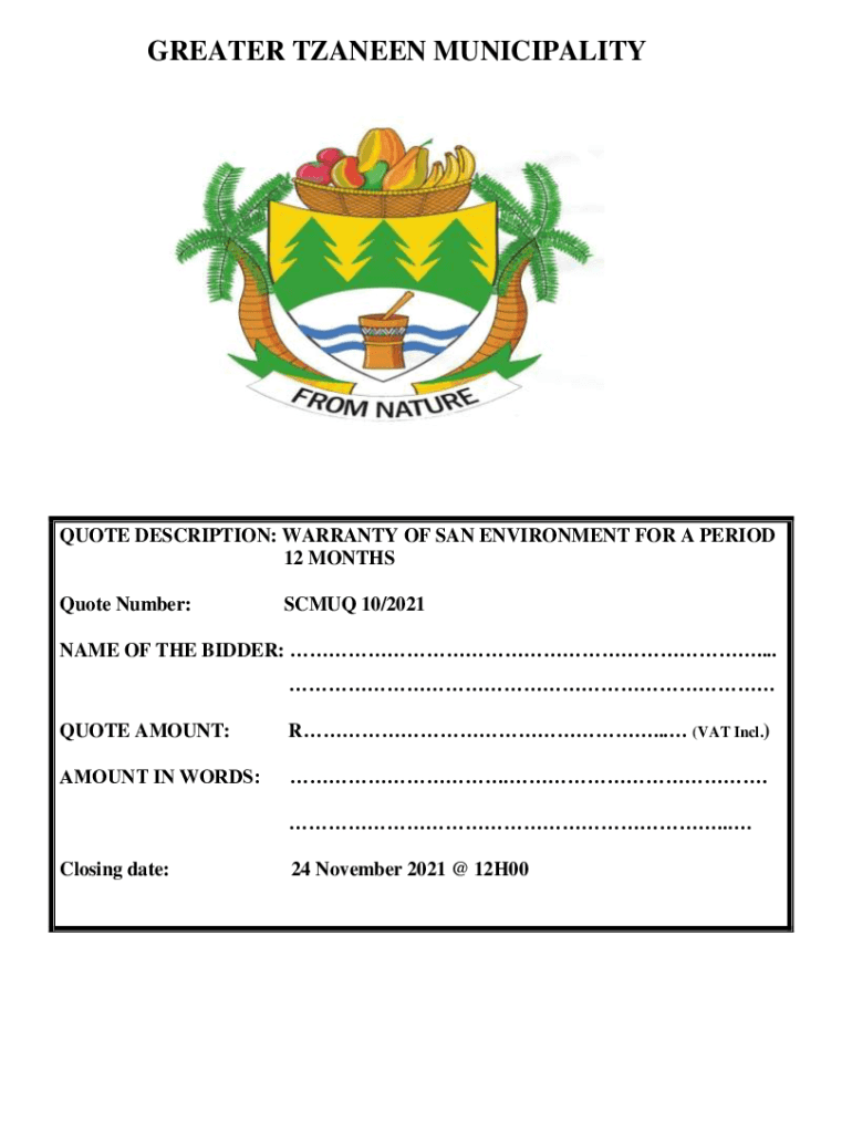 Get the free QUOTE DESCRIPTION: WARRANTY OF SAN ENVIRONMENT FOR A PERIOD