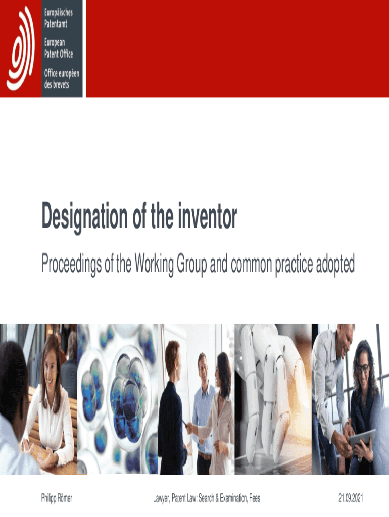 Designation of the inventor Proceedings of the Working Group and common practice adoptedPhilipp RmerLawyer, Patent Law: Search & Examination, Fees21.09.2021Defining a common practice the process of