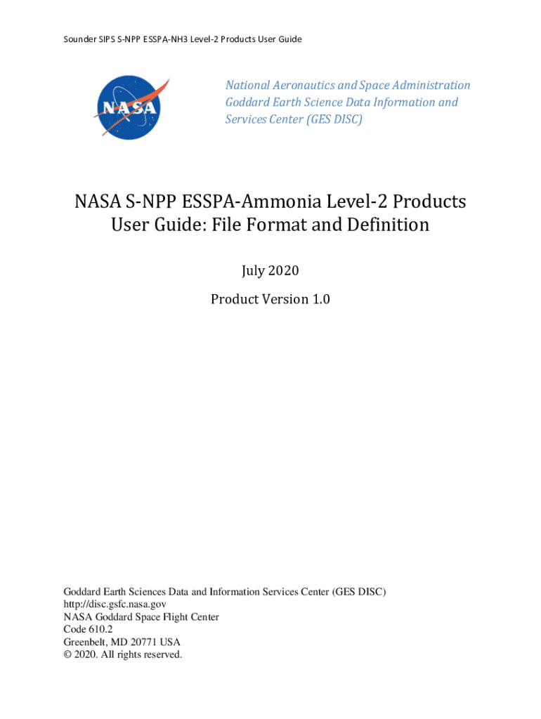 Get the free NASA S-NPP ESSPA-Ammonia Level-2 Products User Guide