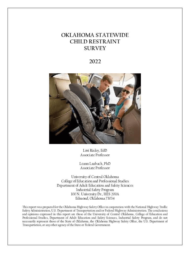 OKLAHOMA STATEWIDE CHILD RESTRAINT SURVEY 2022Lori Riley, EDD Associate Professor Leann Launch, PhD Associate Professor University of Central Oklahoma College of Education and Professional Studies