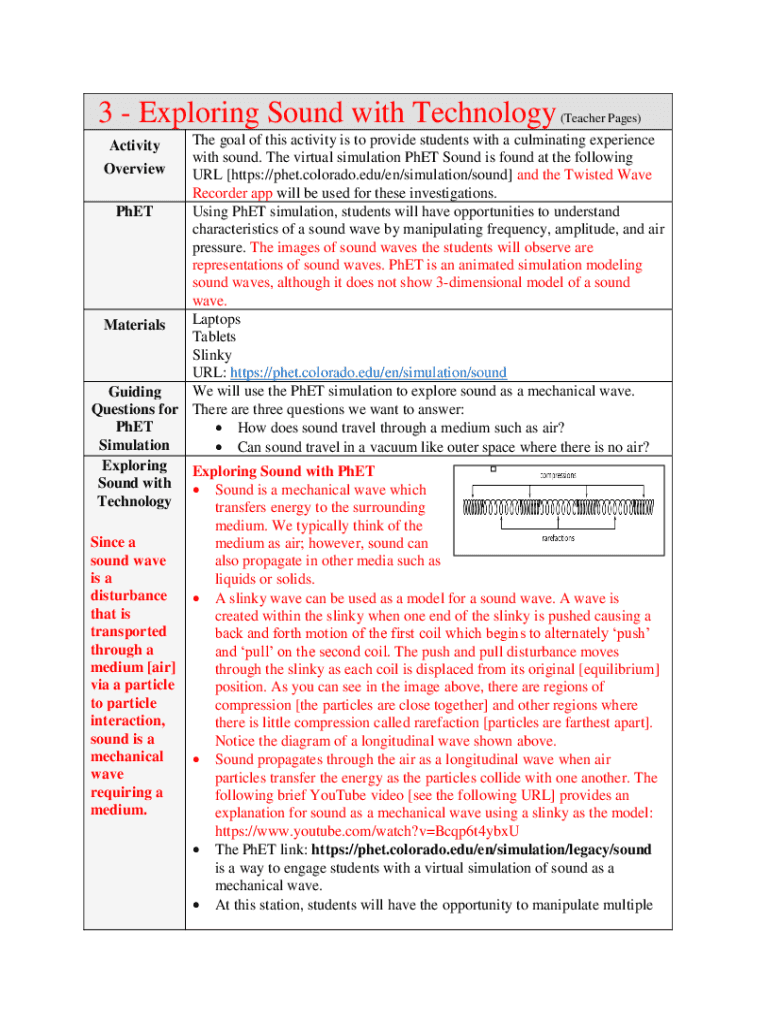 3 Exploring Sound with Technology (Teacher Pages) The goal of this activity is to provide students with a culminating experience with sound. The virtual simulation Poet Sound is found at the following