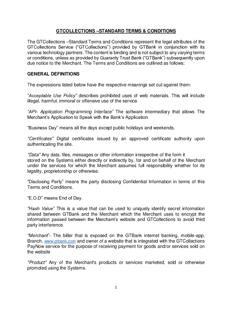 COLLECTIONS STANDARD TERMS & CONDITIONS The Collections Standard Terms and Conditions represent the legal attributes of the Collections Service (Collections) provided by Bank in conjunction with its