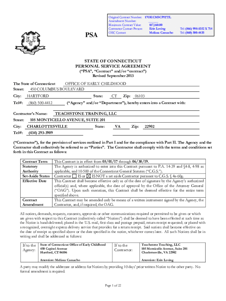 Original Contract Number: 17OECMSCP1TTL Amendment Number: ___ Maximum Contract Value: $17,160.00 Contractor Contact Person: Erin Loving OEC Contact Melissa CamachoPSATel: (866) 9988352 × 714 Tel: