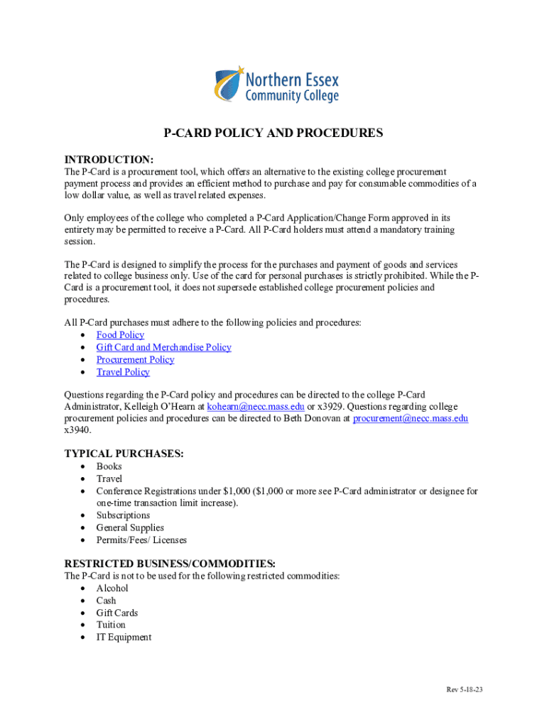 CARD POLICY AND PROCEDURES INTRODUCTION: The Card is a procurement tool, which offers an alternative to the existing college procurement payment process and provides an efficient method to purchase