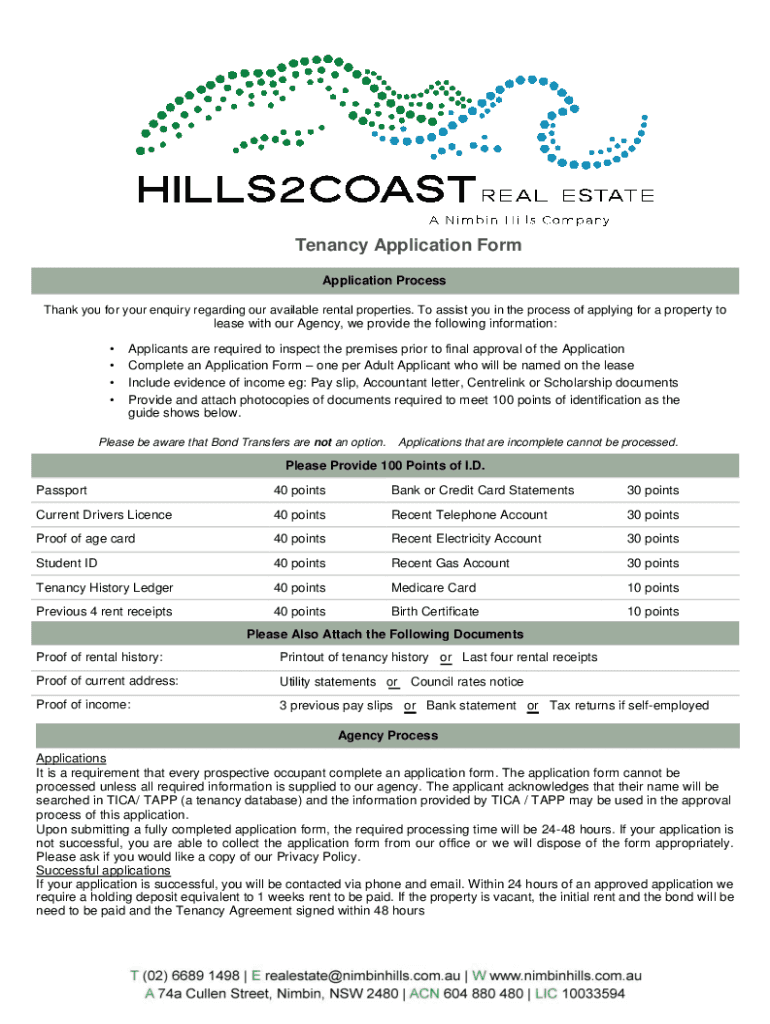 Tenancy Application Form Application Process Thank you for your inquiry regarding our available rental properties. To assist you in the process of applying for a property to lease with our Agency,