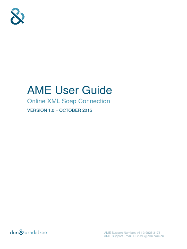 VERSION 1.0 OCTOBER 2015AME Support Number: +61 3 9828 3173
