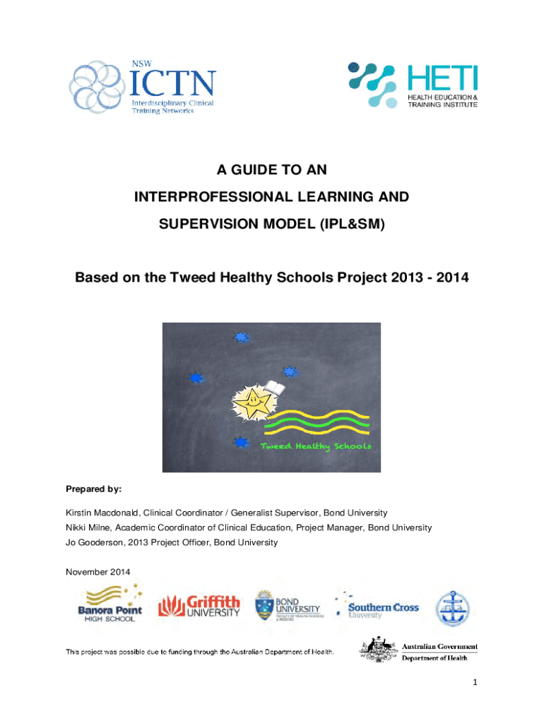 A GUIDE TO AN INTERPROFESSIONAL LEARNING AND SUPERVISION MODEL (PLUS)Based on the Tweed Healthy Schools Project 2013 2014Prepared by: Kirstin Macdonald, Clinical Coordinator / Generalist Supervisor,
