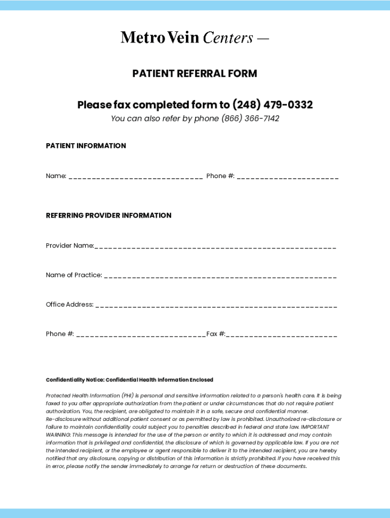 PATIENT REFERRAL FORM Please fax completed form to (248) 4790332 You can also refer by phone (866) 3667142 PATIENT Informational: ___ Phone #: ___REFERRING PROVIDER INFORMATIONProvider Name:___Name
