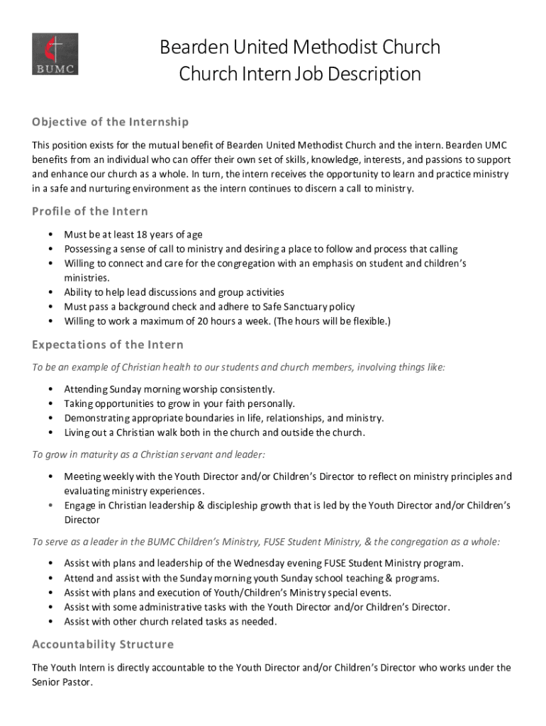 Bearded United Methodist Church Intern Job Description Objective of the Internship This position exists for the mutual benefit of Bearded United Methodist Church and the intern. Bearded UMC benefits
