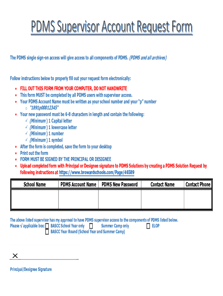 The PDMS single signor access will give access to all components of PDMS. (PDMS and all archives)Follow instructions below to properly fill out your request form electronically: FILL OUT THIS FORM