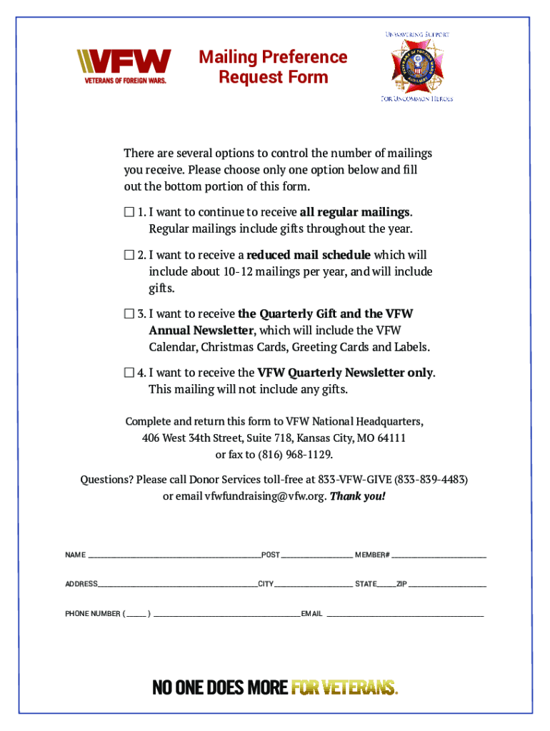 Mailing Preference Request Former are several options to control the number of mailings you receive. Please choose only one option below and fill out the bottom portion of this form. 1. I want to