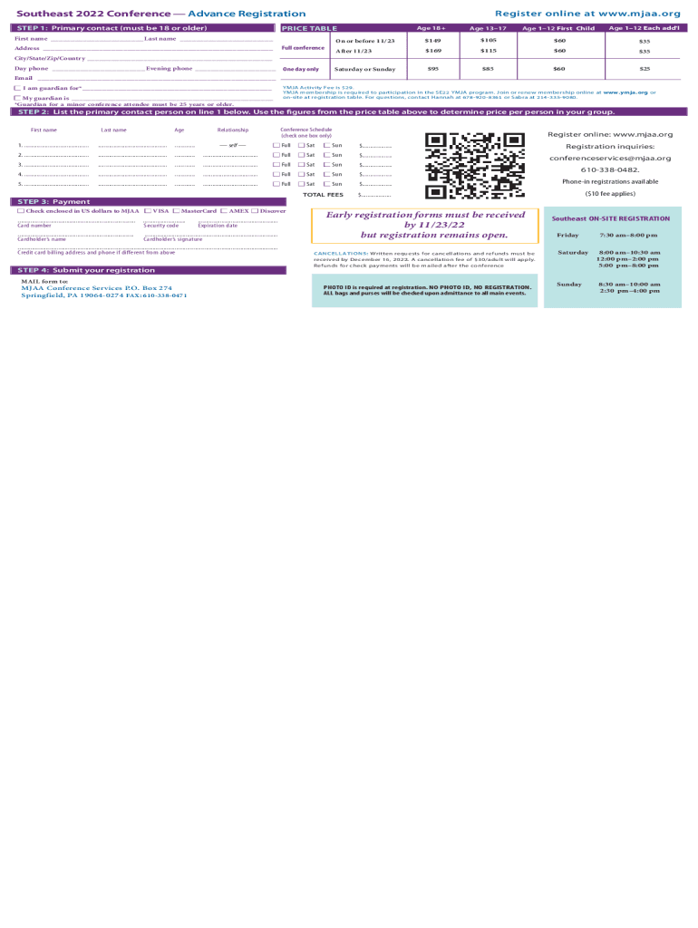 STEP 1: Primary contact (must be 18 or older)Register online at www.mjaa.orgPRICE Ableist name ___ Last name ___Address ___Age 18+Age 1317Age 112 Each add\'l$$$353525City/State/Zip/Country ___ Day