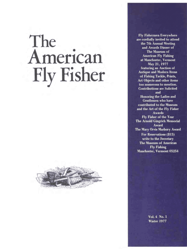 The American Fly Fishery Fishermen Everywhere are cordially invited to attend the 7th Annual Meeting and Awards Dinner of The Museum of American Fly Fishing at Manchester, Vermont May 21, 1977, featuring
