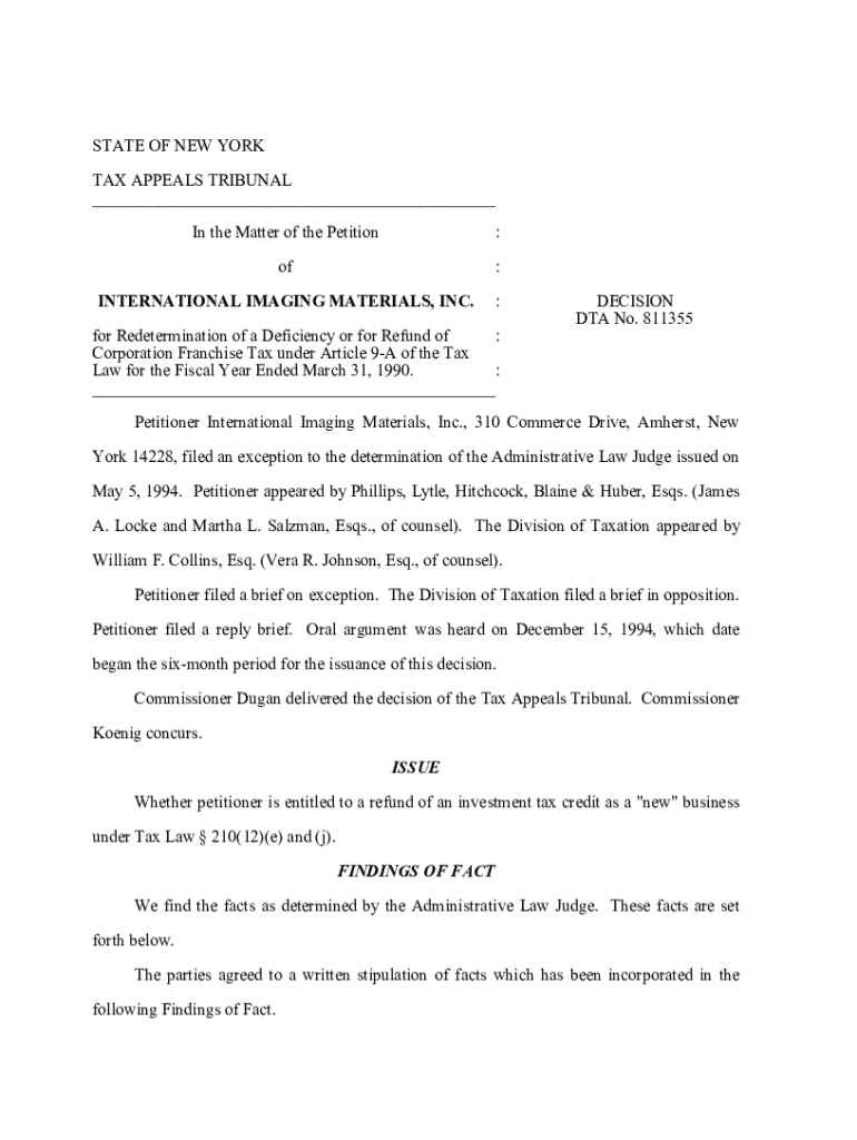 STATE OF NEW YORK TAX APPEALS TRIBUNAL ___ In the Matter of the Petition:of:INTERNATIONAL IMAGING MATERIALS, INC.:for Redetermination of a Deficiency or for Refund of : Corporation Franchise Tax under