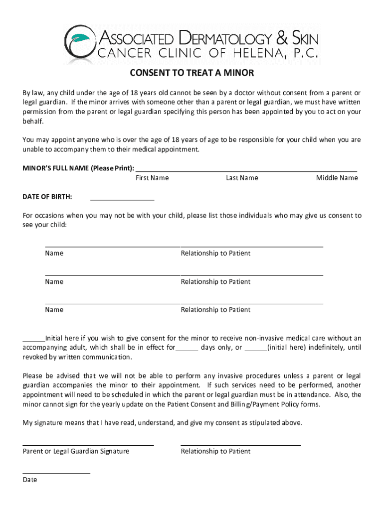 CONSENT TO TREAT A MINOR By law, any child under the age of 18 years old cannot be seen by a doctor without consent from a parent or legal guardian. If the minor arrives with someone other than a