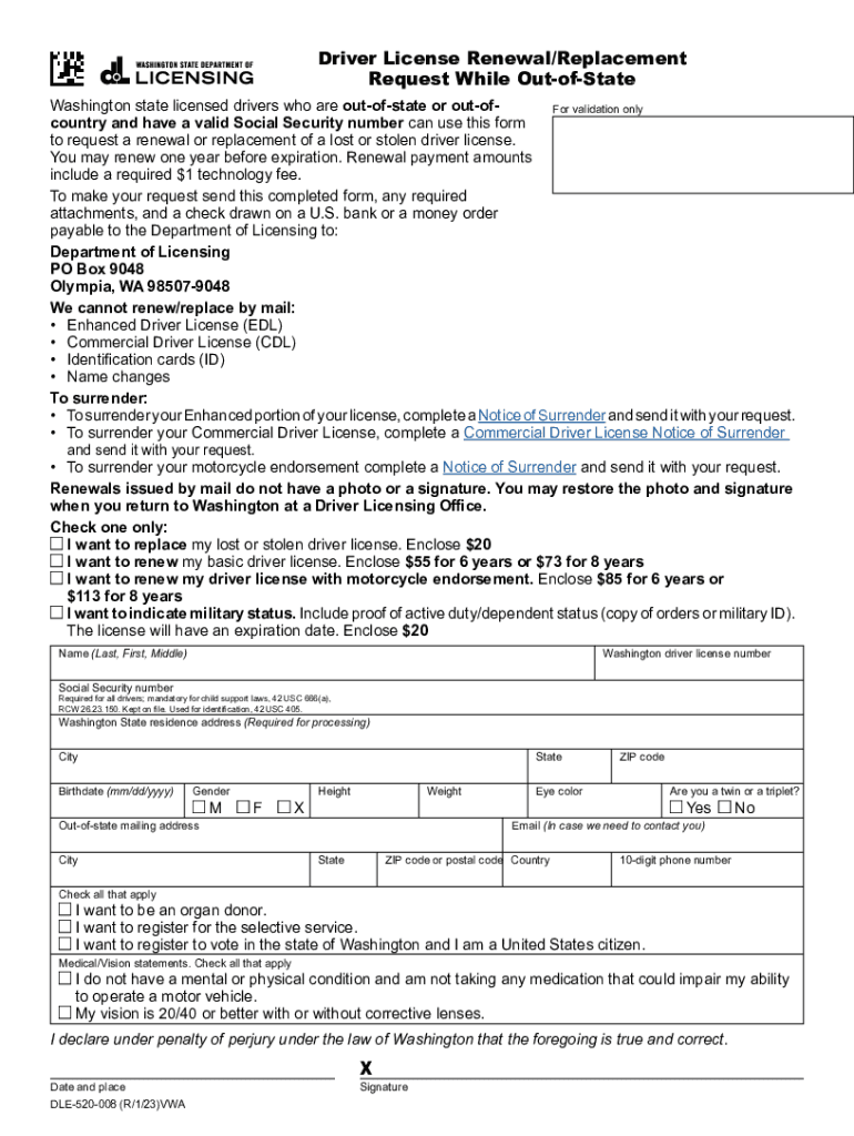 Get the free Driver License Renewal/Replacement Request While Out-of-State. Washington state lice...