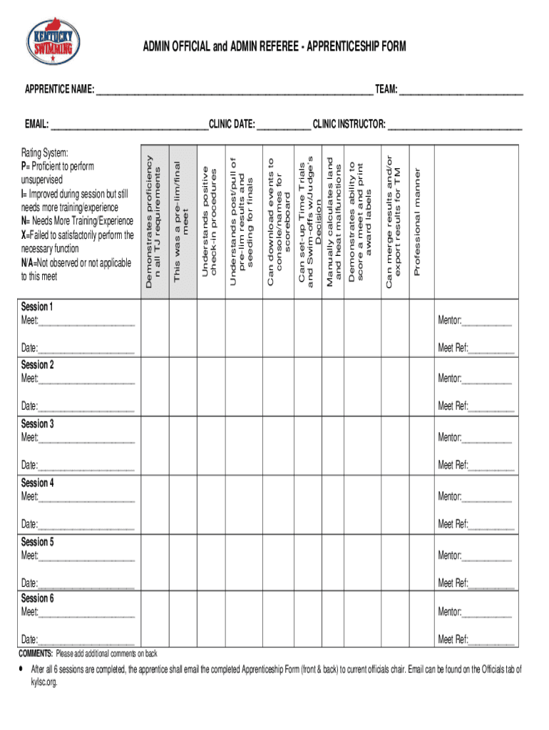 ADMIN OFFICIAL and ADMIN REFEREE APPRENTICESHIP FORM
