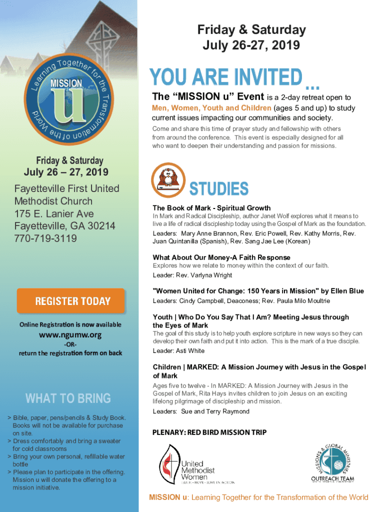 Missionaries flea ringette RF o e Transfer r THD Pluto Friday & Saturday July 2627, 2019YOU ARE INVITED ... The MISSION u Event is a 2day retreat open women, Women, Youth and Children (ages 5 and