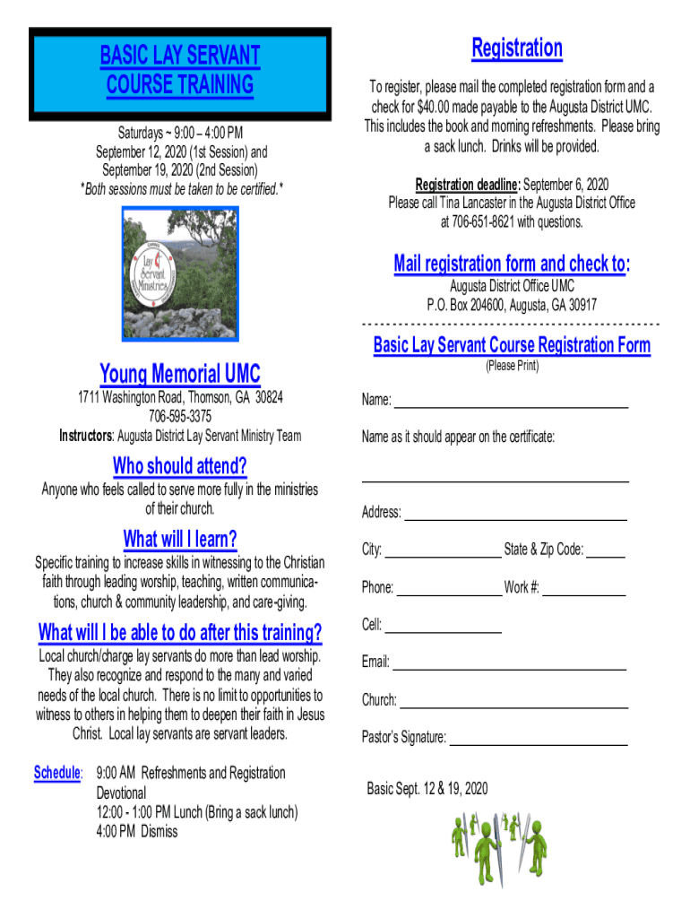 BASIC LAY SERVANT COURSE TRAINING Saturdays 9:00 4:00 PM September 12, 2020 (1st Session) and September 19, 2020 (2nd Session) *Both sessions must be taken to be certified.×Registration To register,
