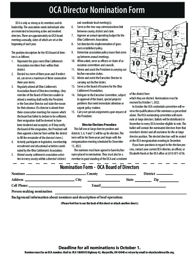 OCT Director Nomination Form OCT is only as strong as its members and its leadership. The association needs individuals who are interested in becoming active and involved directors. There are approximately