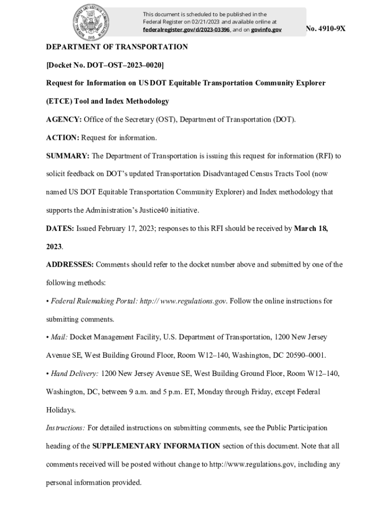 This document is scheduled to be published in the Federal Register on 02/21/2023 and available online at Billing federalregister.gov/d/202303396, and OST; on gov info. Goode No. 49109XDEPARTMENT OF