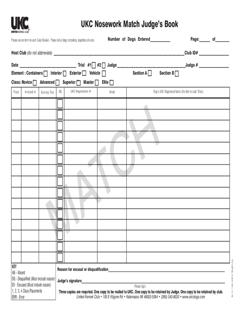 Please use one form for each Class Division. Please list all dogs competing, regardless of score. Number of Dogs Entered___Page:___ of___Host Club (do not abbreviate)