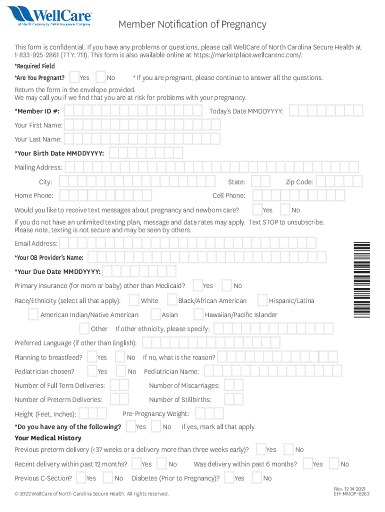 Member Notification of Pregnancy This form is confidential. If you have any problems or questions, please call Welfare of North Carolina Secure Health at 18339252861 (TTY: 711). This form is also