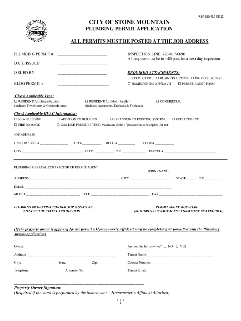 PLUMBING PERMIT #___DATE ISSUED___ISSUED BY___REQUIRED ATTACHMENTS:___ STATE CARD