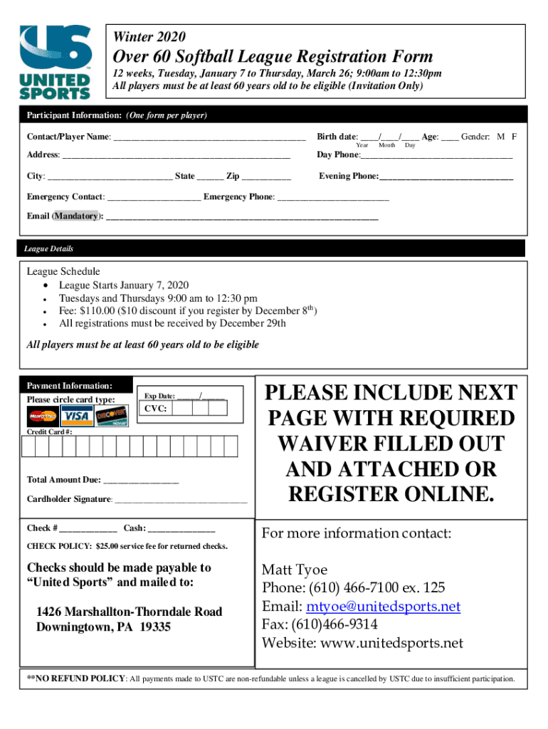 Over 60 Softball League is not the form you're looking for?Search for another form here.