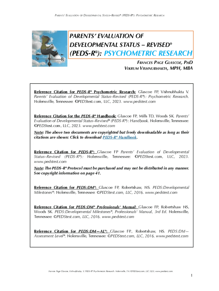 Get the free (PEDS-R): PSYCHOMETRIC RESEARCH