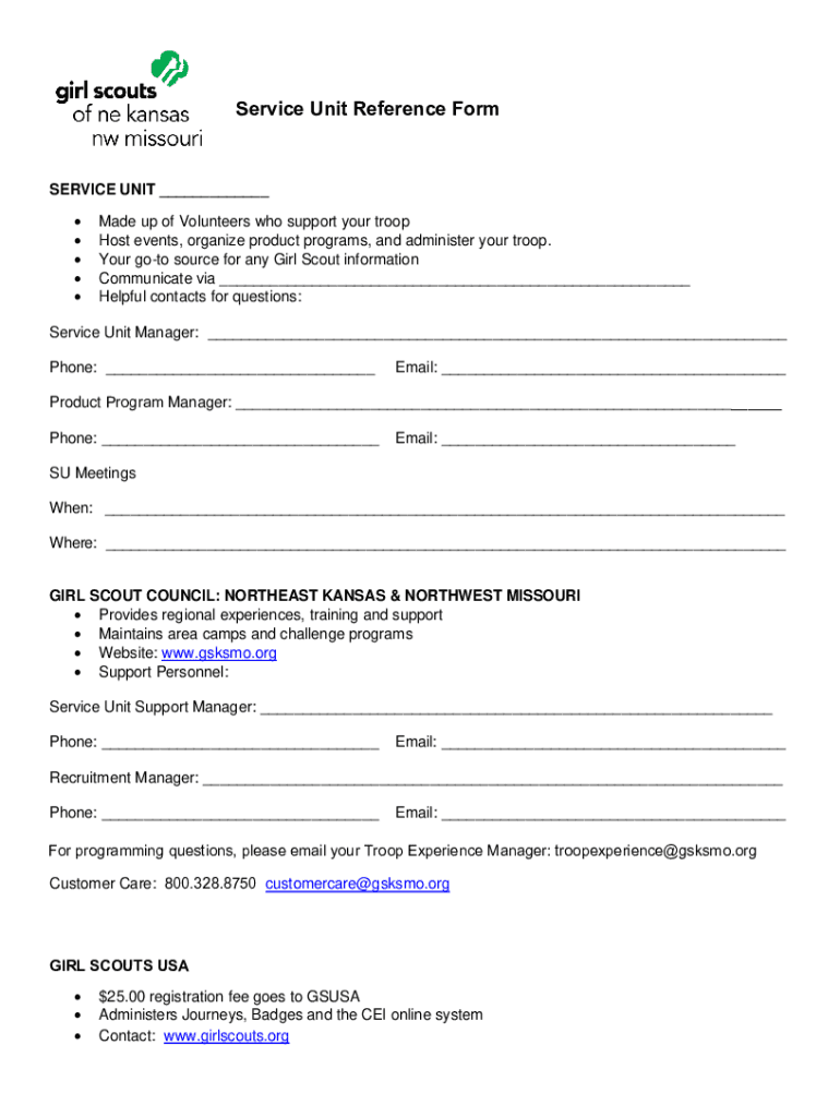 Service Unit Reference Preservice UNIT ___ Made up of Volunteers who support your troop Host events, organize product programs, and administer your troop. Your got source for any Girl Scout information