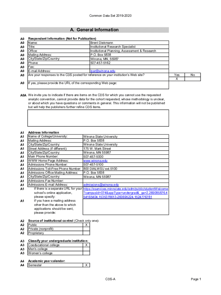 Common Data Set 20192020A. General Information A0 A0 A0 A0 A0 A0 A0 A0 A0 A0Respondent Information (Not for Publication) Name: Brent Riemann Title: Institutional Research Specialist Office: Institutional