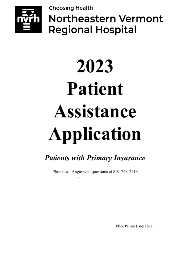 2023 Patient Assistance Application Patients with Primary Insurance Please call Angie with questions at 8027487518.[Place Patient Label Here]Instructions Northeastern Vermont Regional Hospitals staff