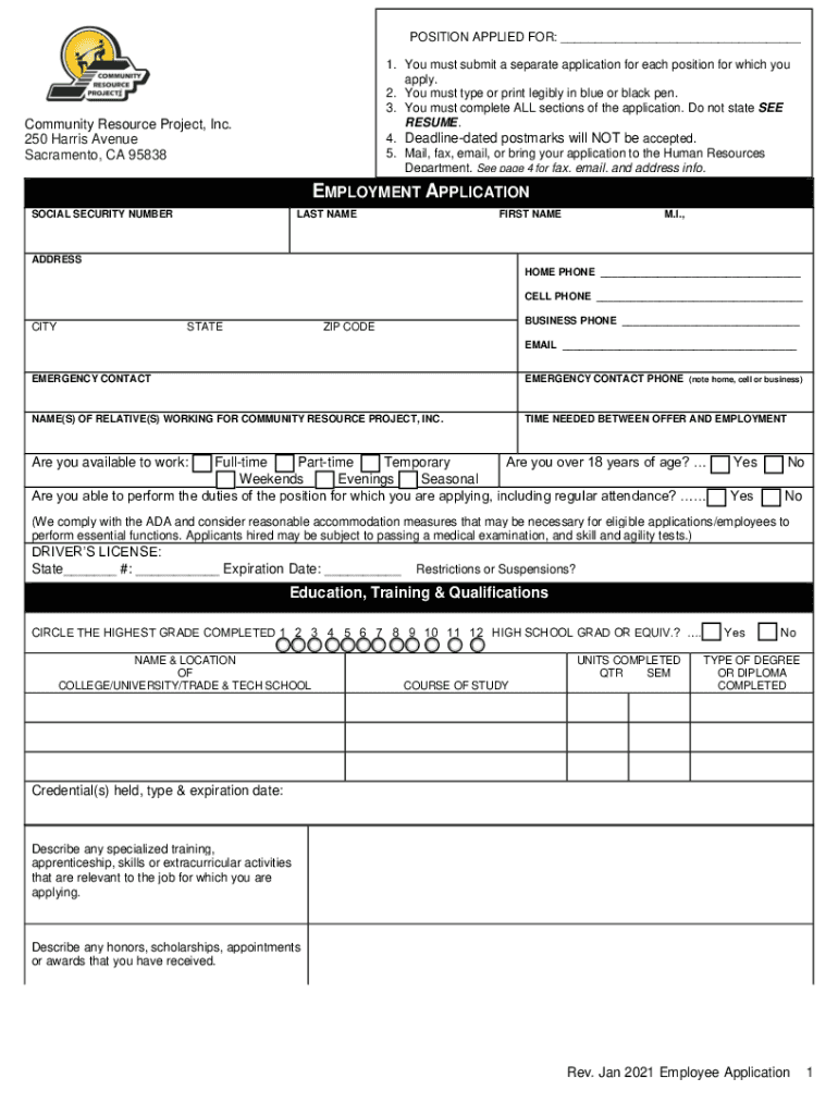POSITION APPLIED FOR: ___ 1. You must submit a separate application for each position for which you apply. 2. You must type or print legibly in blue or black pen. 3. Furthermore, you must complete
