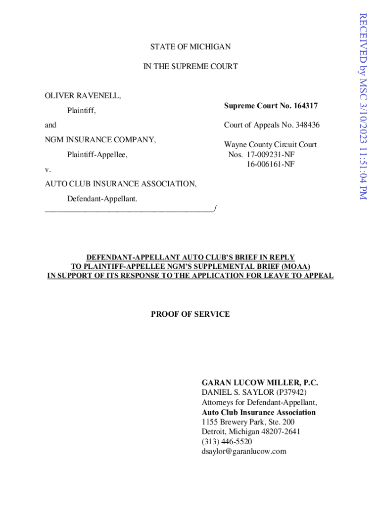 Get the free 164317 Oliver Ravenell v Auto Club Ins Ass'n