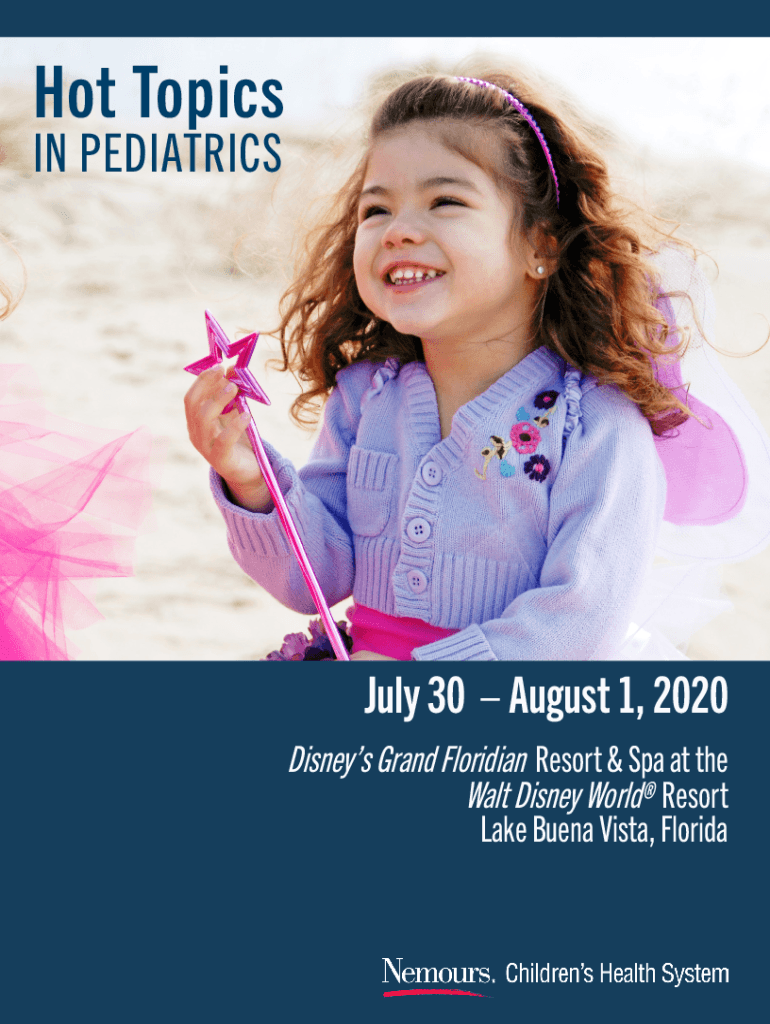 Hot Topics IN PEDIATRICS July 30 August 1, 2020, Disney's Grand Floridian Resort & Spa at the Walt Disney World Resort Lake Buena Vista, Florida sixth annual Hot Topics in Pediatrics conference will