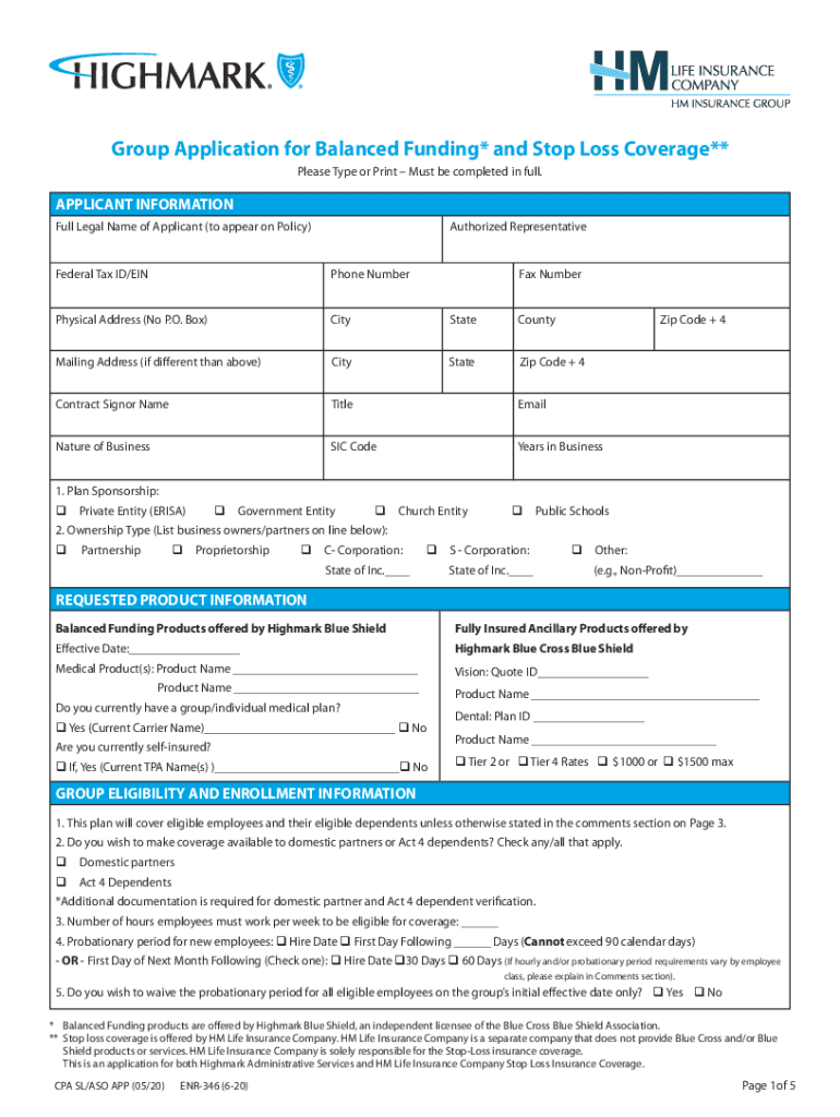 Get the free Group Application for Balanced Funding* and Stop Loss ...