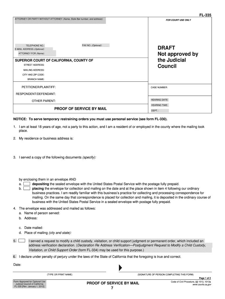 Get the free Draft Form FL-335 - courts ca