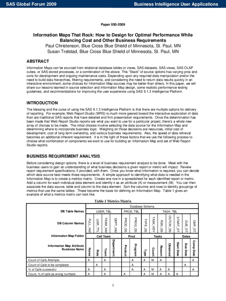SAS Global Forum 2009Business Intelligence User ApplicationsPaper 0502009Information Maps That Rock: How to Design for Optimal Performance While Balancing Cost and Other Business Requirements Paul