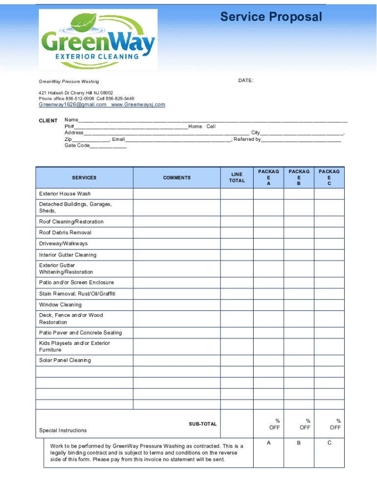 Service ProposalDATE:Greenway Pressure Washing