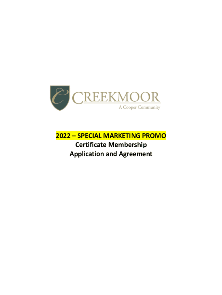 2022 SPECIAL MARKETING PROMO Certificate Membership Application and AgreementCertificate Membership Application Applicant Information Applicants Name: ___ Home Address ___ City ___ State ___ Zip Code
