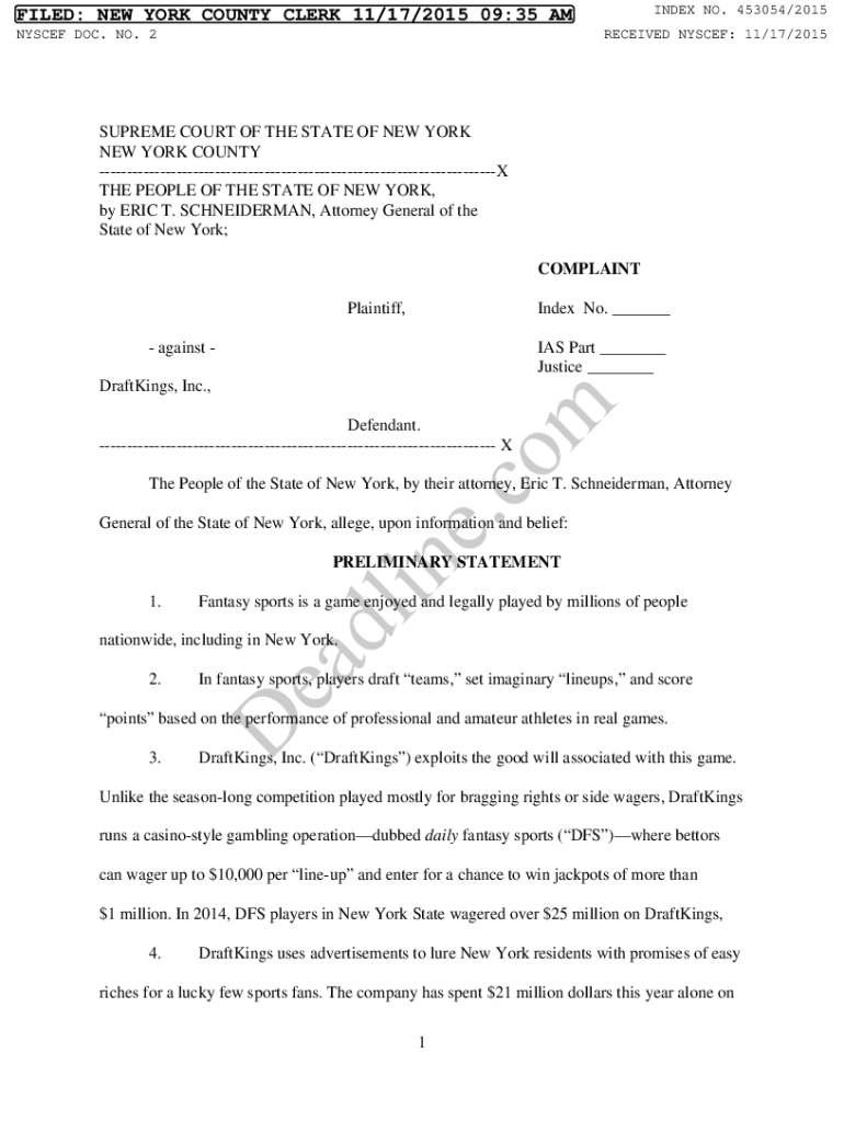INDEX NO. 453054/2015FILED: NEW YORK COUNTY CLERK 11/17/2015 09:35 AM NYSE DOC. NO. 2RECEIVED NYSE: 11/17/2015SUPREME COURT OF THE STATE OF NEW YORK COUNTY X THE PEOPLE OF THE STATE OF NEW YORK, by