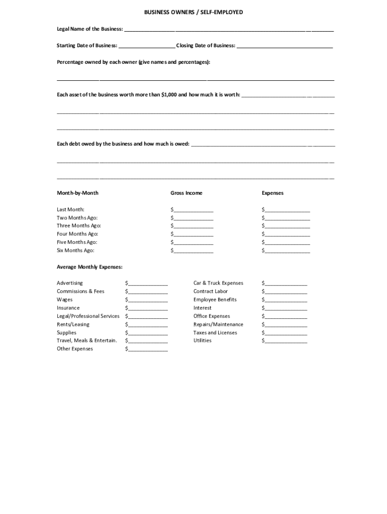 Fill out information on income sources including employment, benefits, and any other sources of income.