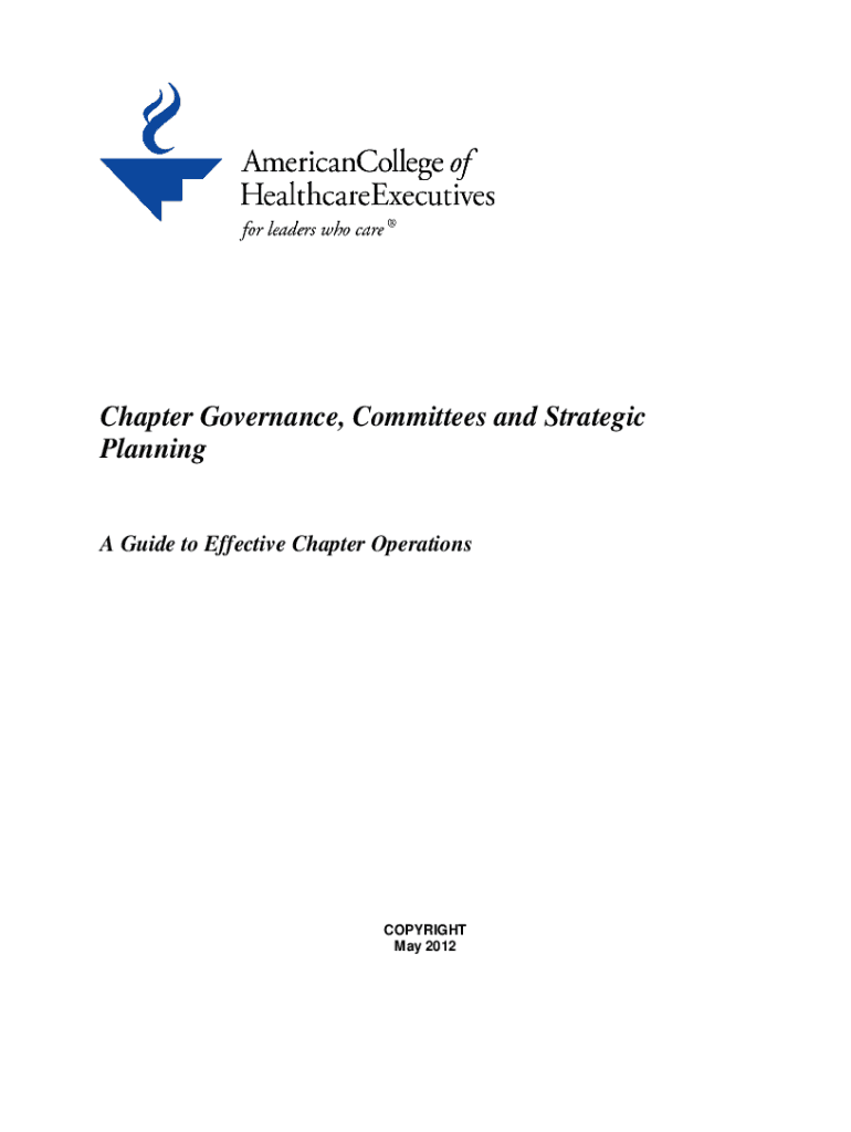 Chapter Governance, Committees and Strategic Planning A Guide to Effective Chapter OperationsCOPYRIGHT May 2012GOVERNANCE Chapters are managed by elected officers and directors who are referred to