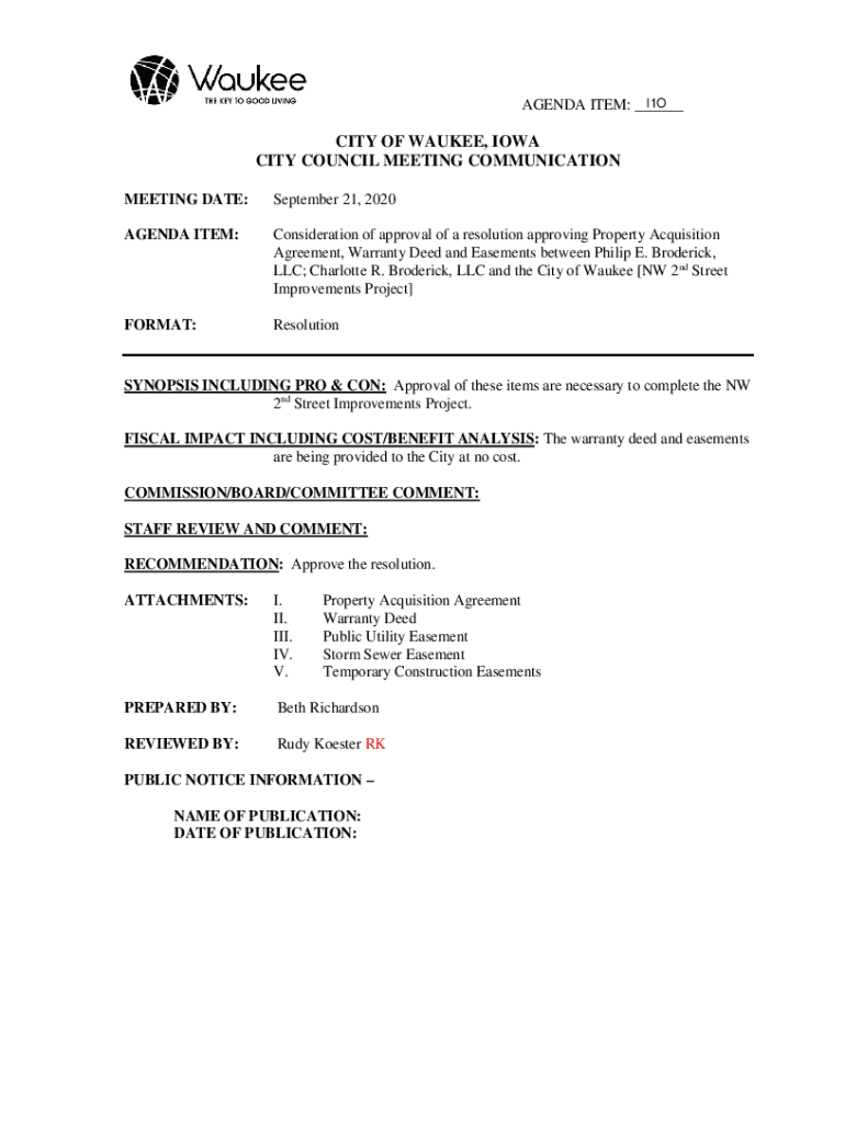 Get the free Consideration of approval of a resolution approving Property Acquisition