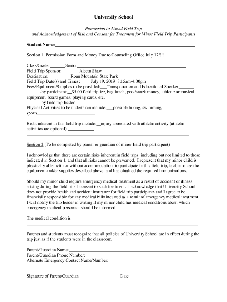 How to fill out school-sponsored trips
