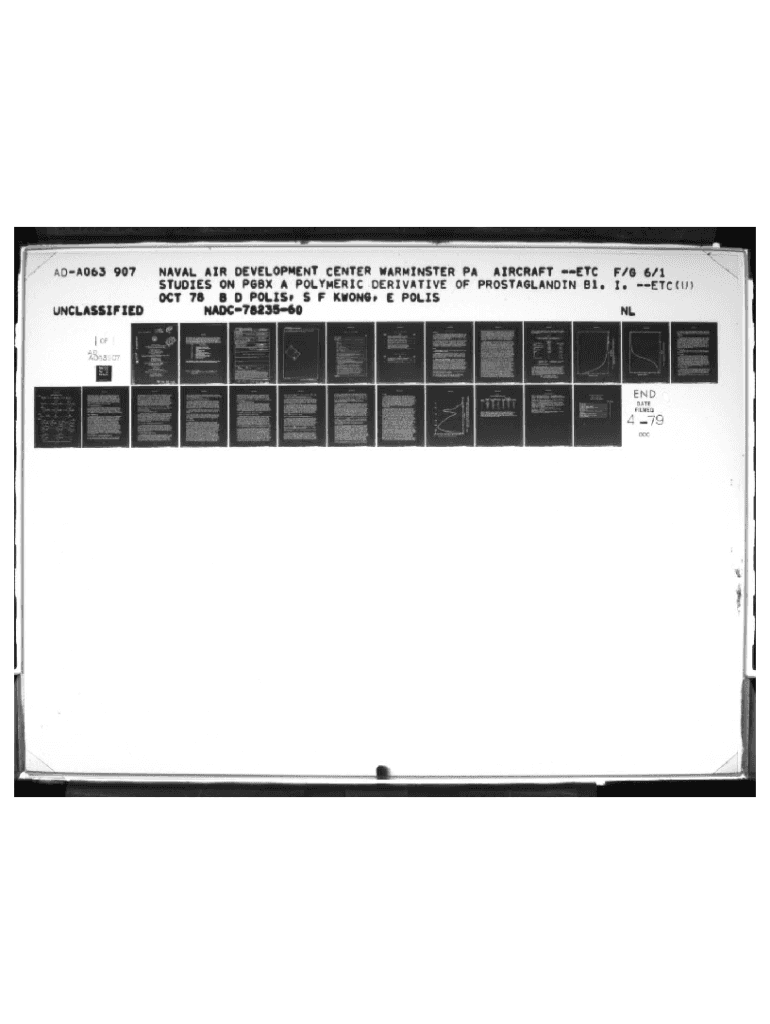 If A DA 06 3 907UNCLASSIFIEDNAVAL AIR DEVELOPMENT CENTER WARM ESTER AIRCRAFT ETC/S 6/ 1STUDIES ON PSL A PO×.AMERICA DERIVATIVE OF PROSTAGLANDIN 01. 1. Etc old Oct 75 S D Pct.IS. S F KW ONS. E PO