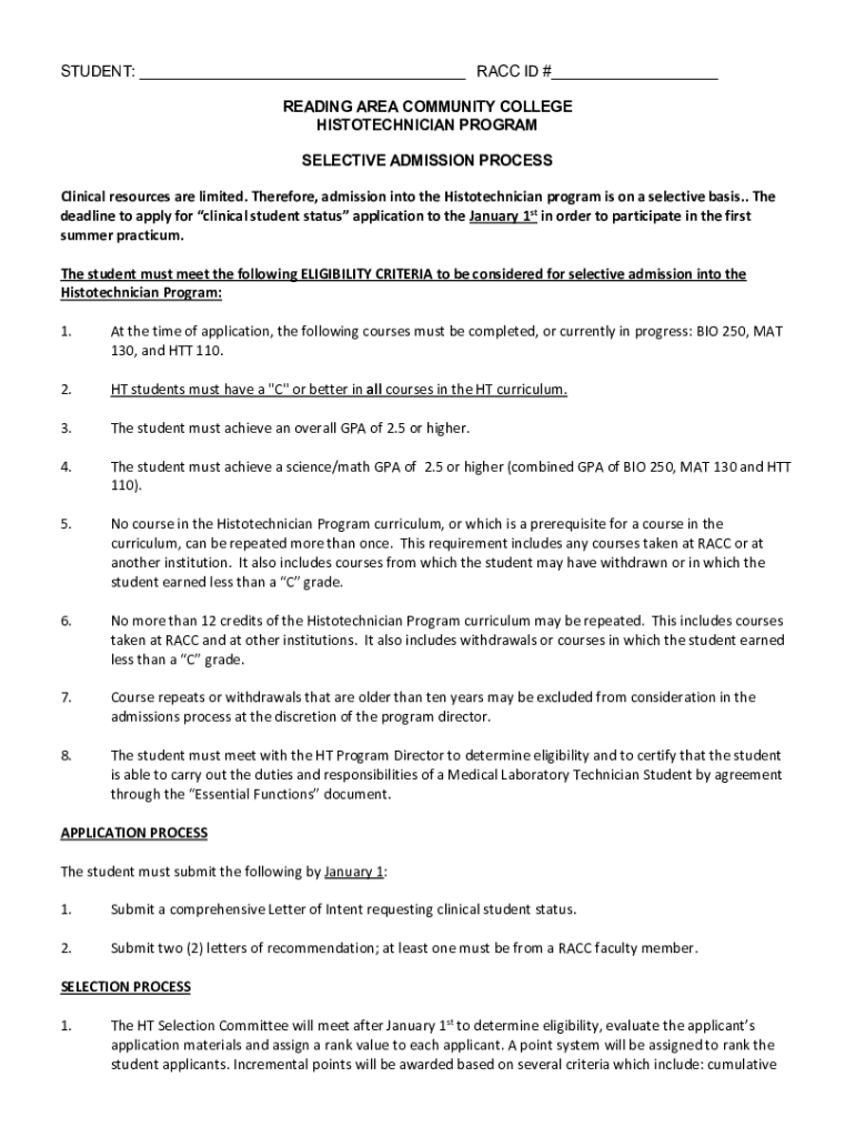 Clinical resources are limited. Therefore, admission into the Histotechnician program is