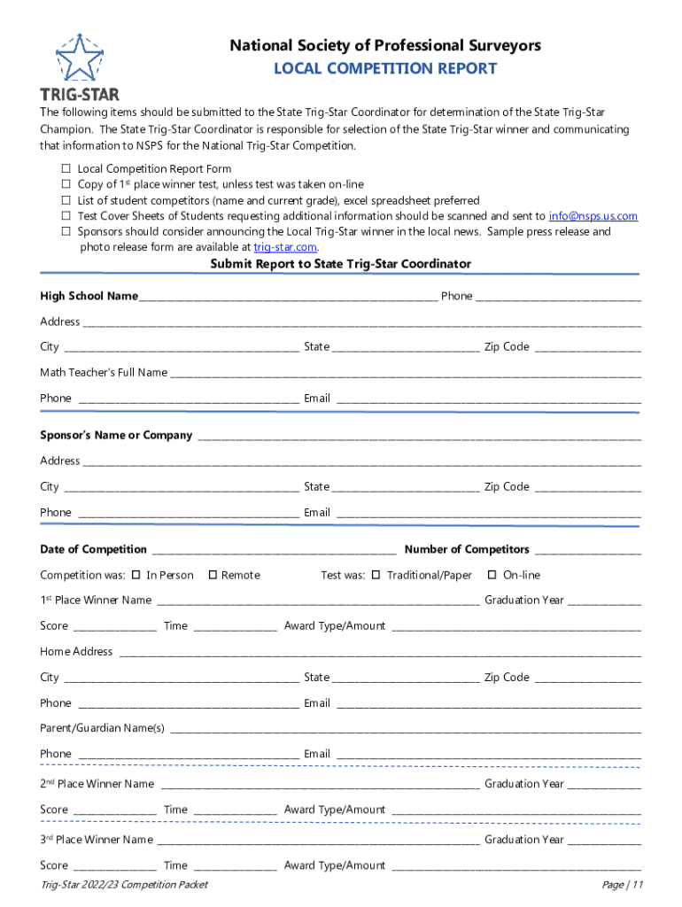 National Society of Professional Surveyors 21 Byte Court, Suite H, Frederick, MD 21702 Phone: 2404394615 | Fax: 2404394952 | trig star.comTrigStar is an annual High School Mathematics Competition