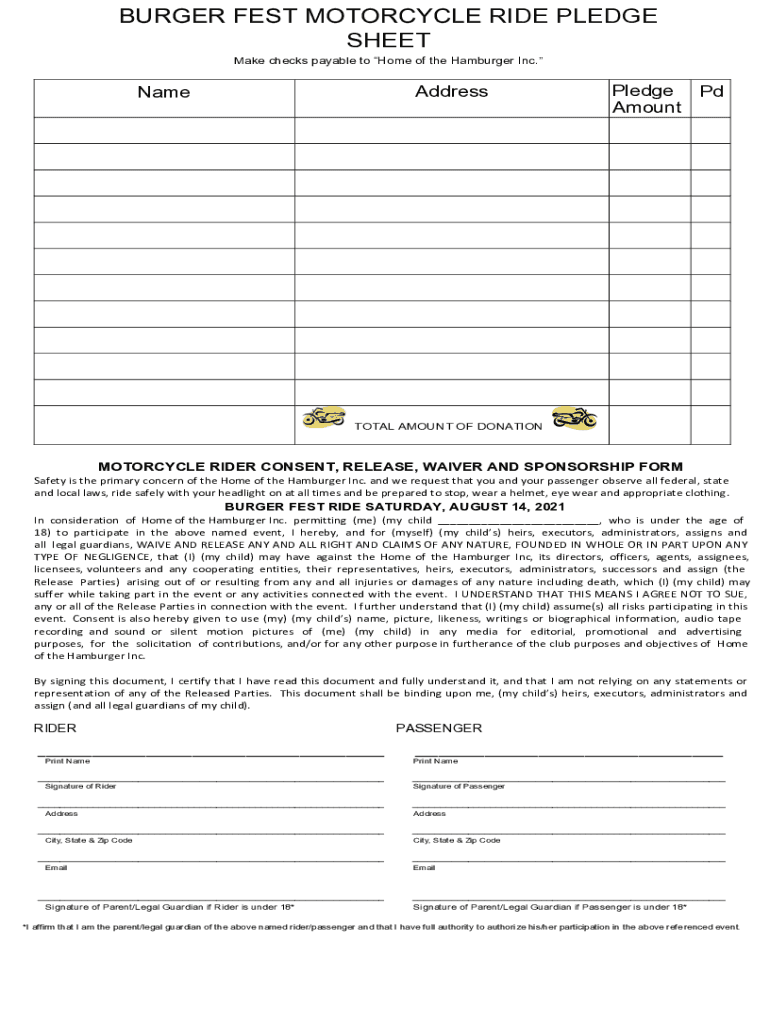 BURGER FEST MOTORCYCLE RIDE PLEDGE